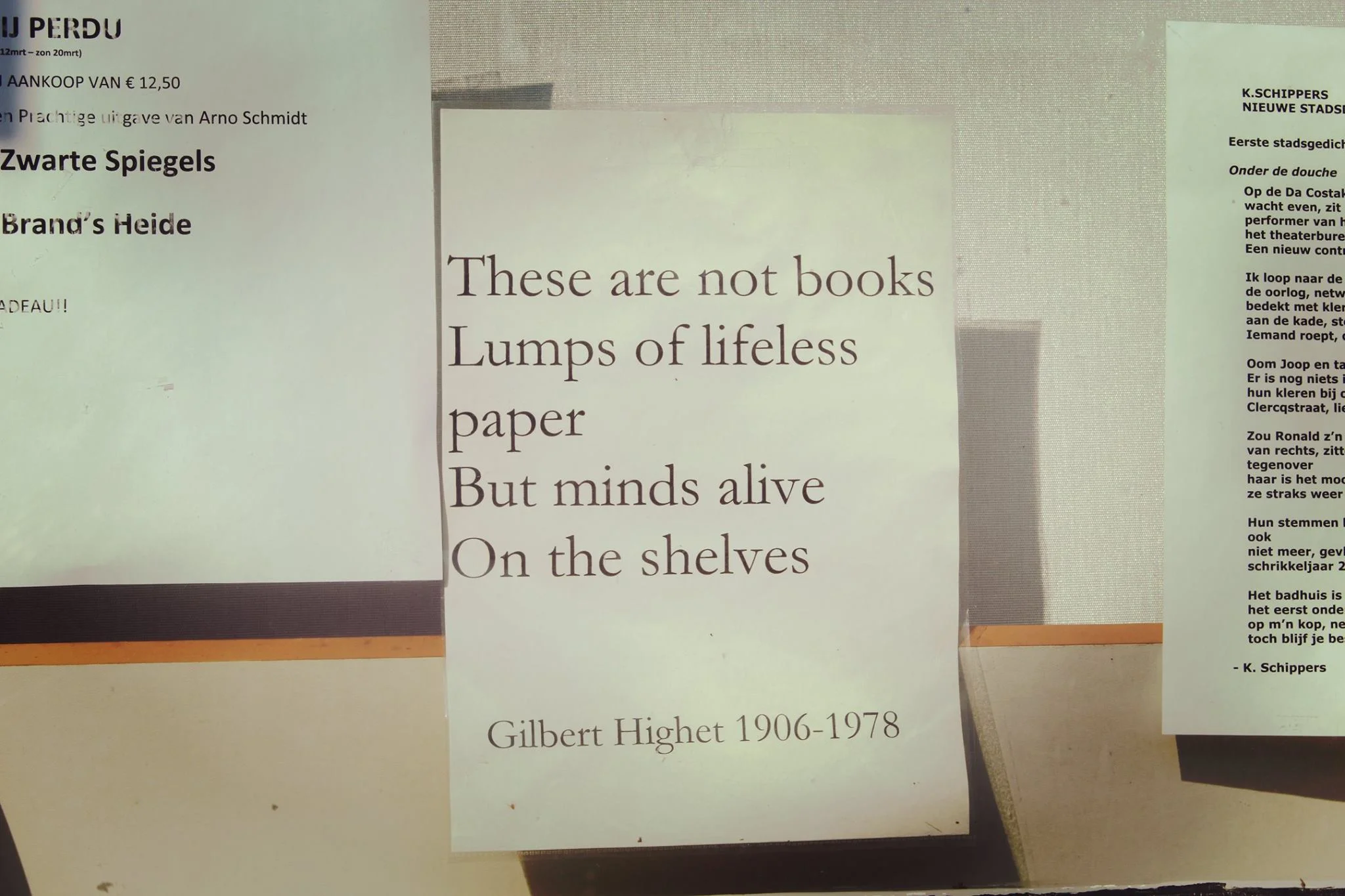 Note on the window of a cafe and poetry meetup space in Amsterdam.
